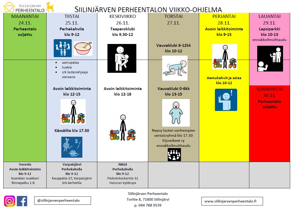 Siilinjärven Perheentalon viikko 24.-30.11. Perheentalon osoite: Toritie 8.