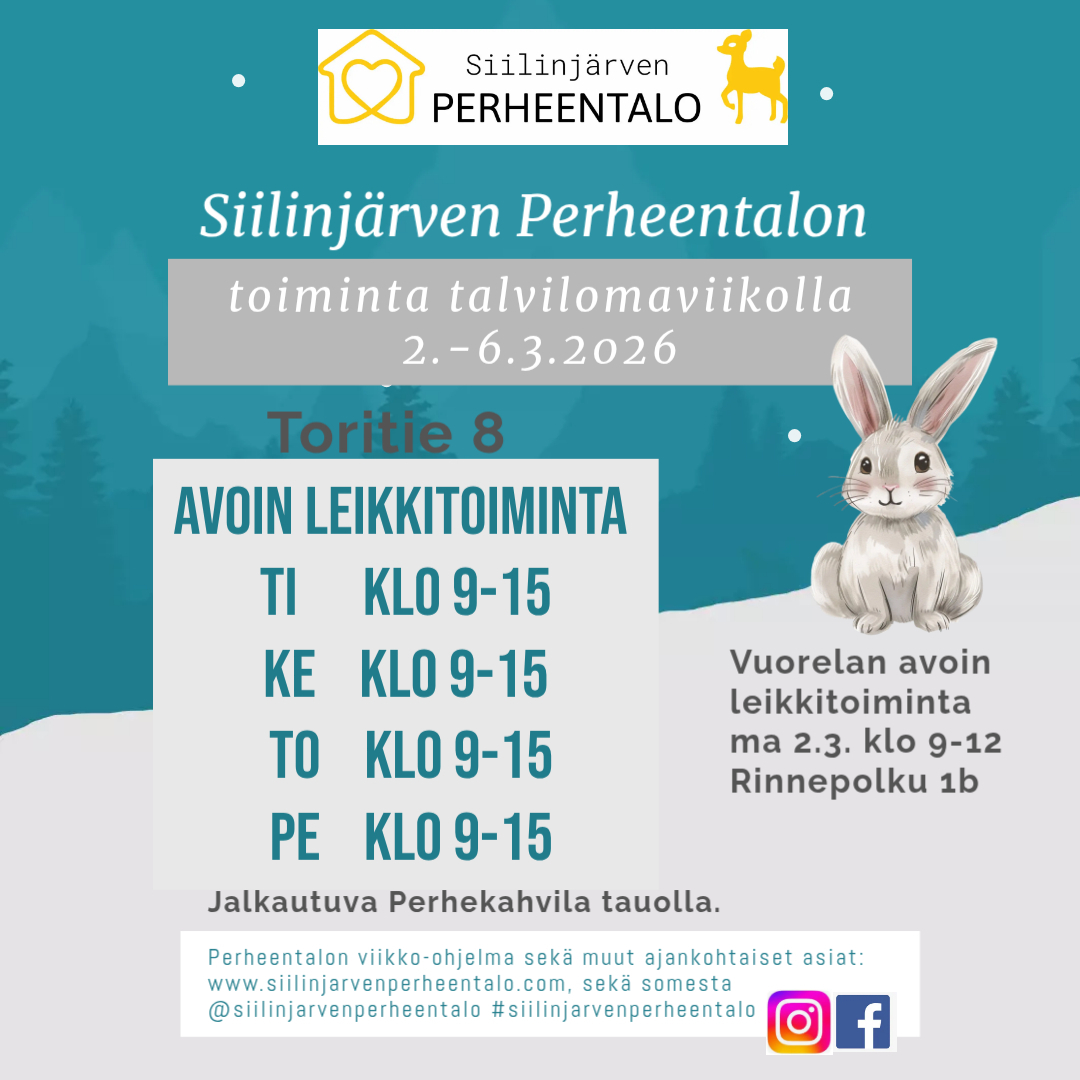 Siilinjärven Perheentalon viikko 16.-22.2. Perheentalon osoite: Toritie 8.