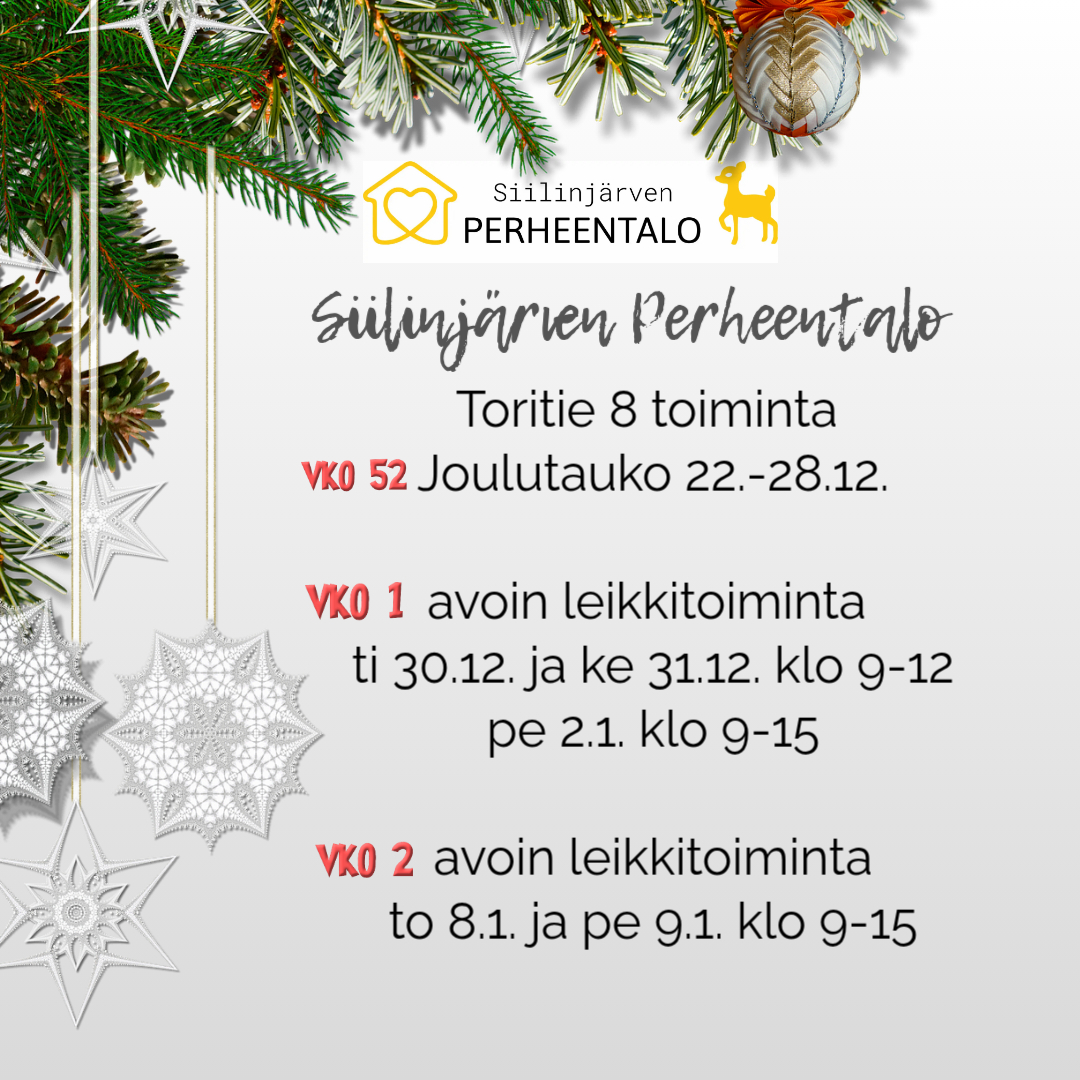 kuukaudessa torstai-iltaisin klo 17-19. Perhekahvila on tarkoitettu kaikenikäisten lasten perheille. Perhekahvilaa ohjaa MLL Siilinjärven paikallisyhdistyksen vapaaehtoiset. Lisää tietoa: Siilinjärven MLL.