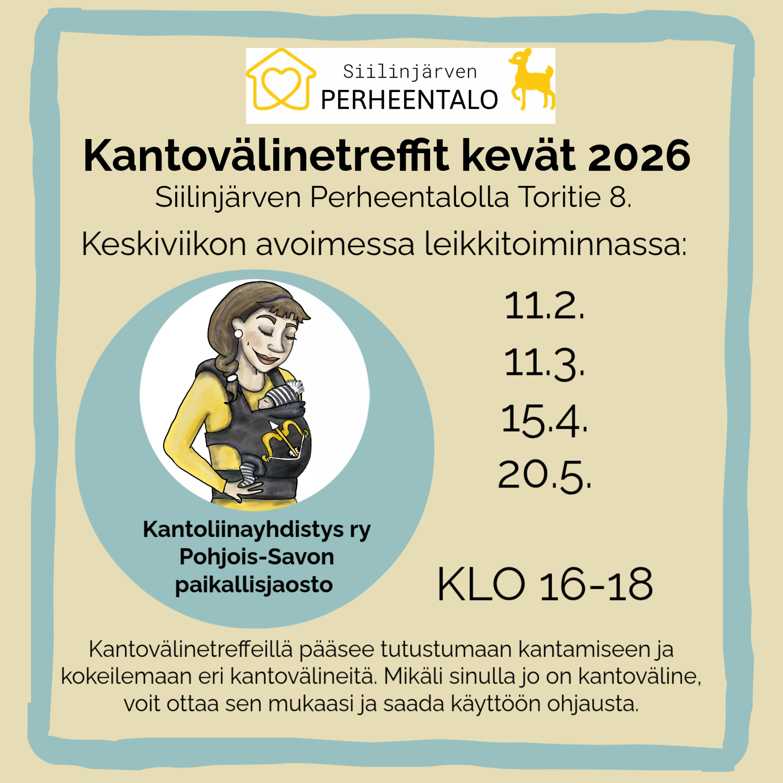 Kantovälinetreffit järjestetään Siilinjärven Perheentalolla (Toritie 8) keväällä 2026: