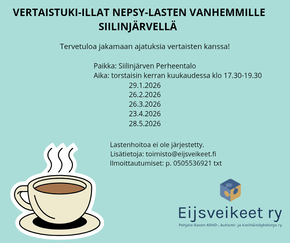 Vertaistuki-illat Nepsy-lasten vanhemmille Siilinjärven Perheentalolla (Toritie 8)