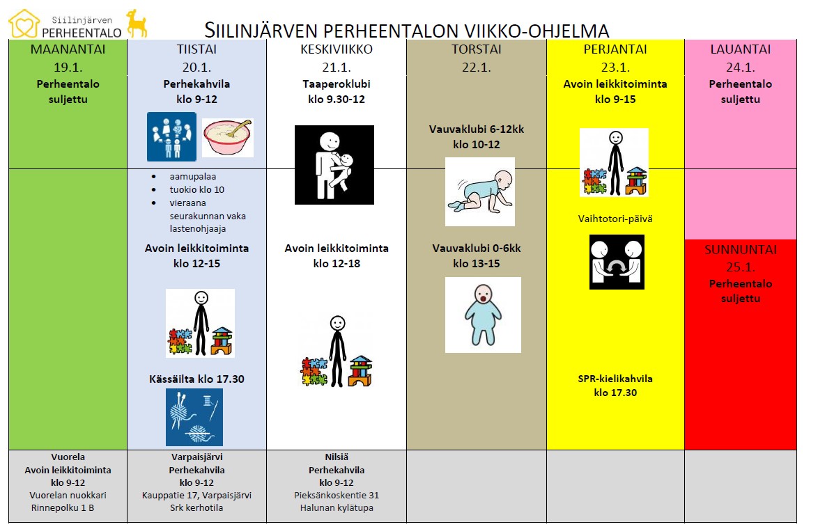 Siilinjärven Perheentalon viikko 19.-25.1. Perheentalon osoite: Toritie 8.