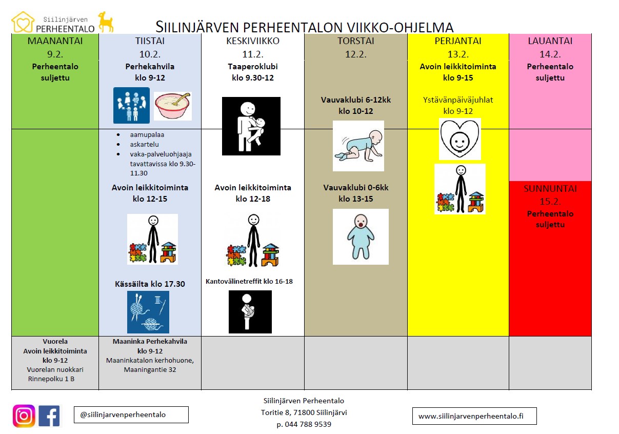 KATSO AINA AJANKOHTAINEN JULKAISTU VIIKKO-OHJELMA. Koska sieltä löytyvät kaikki perheentalon toiminnat esim. jalkautuva toiminta ja vertaisryhmät jne.