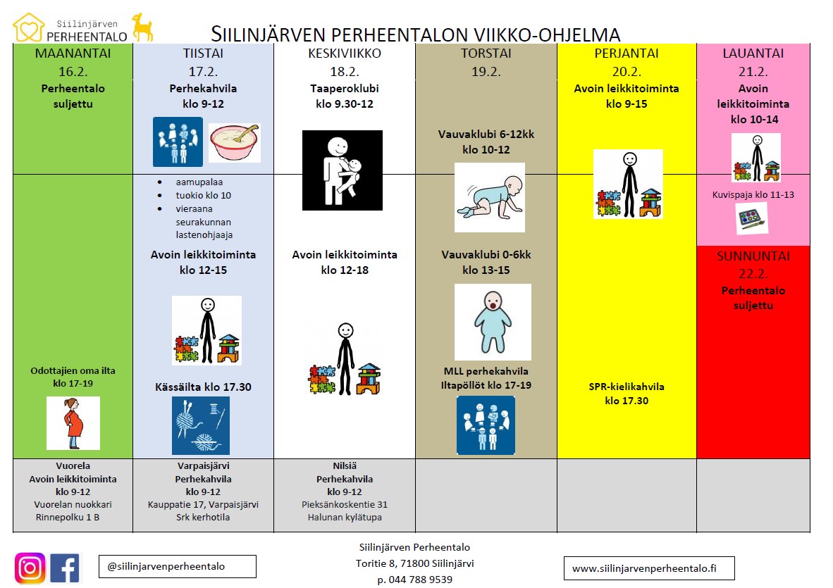 Siilinjärven Perheentalon viikko 16.-22.2. Perheentalon osoite: Toritie 8.