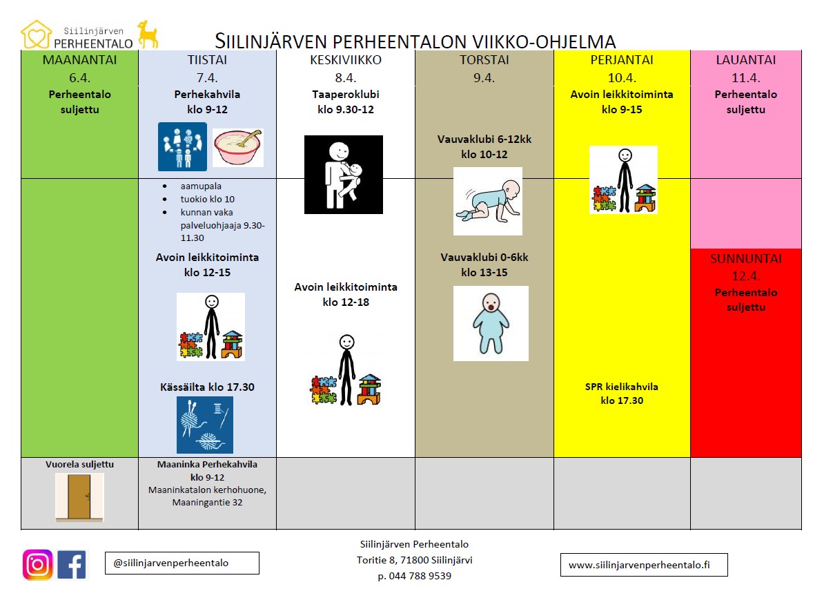 Siilinjärven Perheentalon viikko 6.-12.4.2026 Perheentalon osoite: Toritie 8.