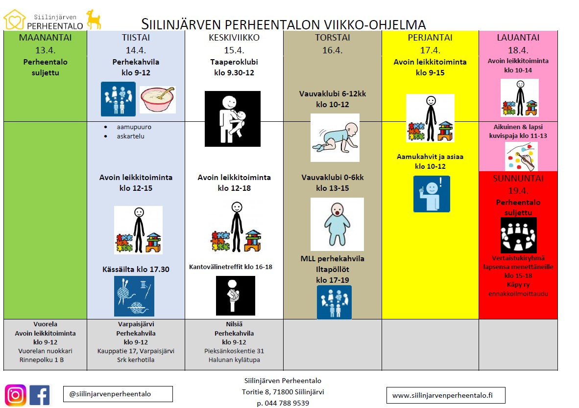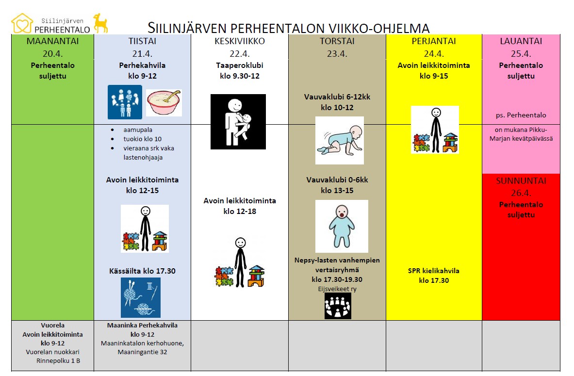 Siilinjärven Perheentalon viikko 13.-19.4. Perheentalon osoite: Toritie 8.