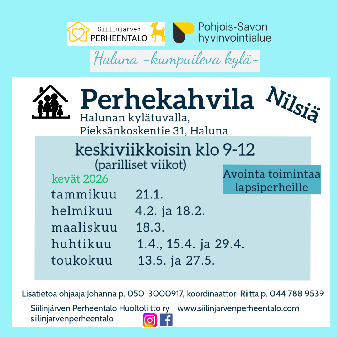 Nilsiä Perhekahvila jokatoinen keskiviikko klo 9-12 parilliset viikot.