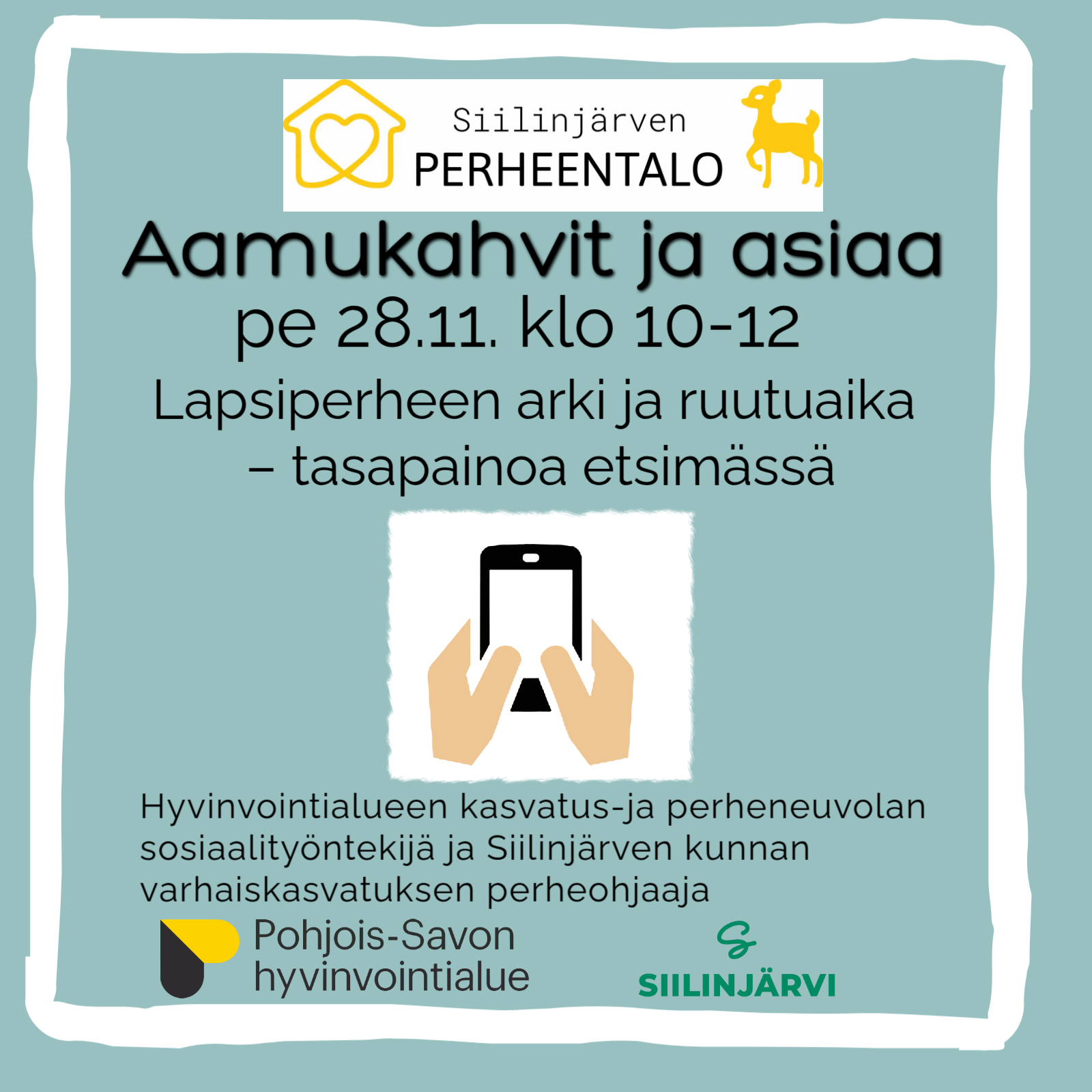 Aamukahvit ja asiaa tilaisuus tapahtuu Perheentalon (Toritie 8) avoimen leikkitoiminnan ohessa eli Perheentalolla tullaan tavalliseen tapaan lasten kanssa, eikä ennakkoilmoittautumista tarvitse tehdä. Tilaisuus on avoin kaikille lapsiperheiden vanhemmille.